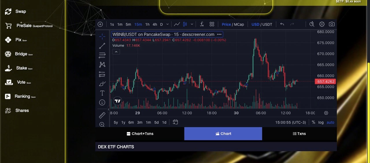 At DEX ETF, we provide an advanced and user-friendly experience with exclusive features that redefine interaction in the crypto world. With crypto purchases via Pix, onboarding new users is quick and accessible. Swap with automatic slippage ensures optimized transactions, while the bridge between blockchains facilitates seamless movement across networks. Our integrated staking allows for passive earnings directly on the platform, and web3 connectivity with our wallet ensures secure and smooth integration.Our platform now expands asset options by supporting tokens from Uniswap, PancakeSwap, NexReing, and various EVM-compatible networks (Ethereum Virtual Machine), granting access to thousands of tokens. This creates a complete, interconnected experience that brings the best of decentralized networks to a single platform, catering to all investor profiles.