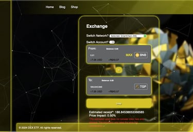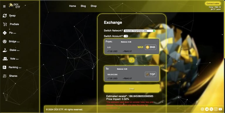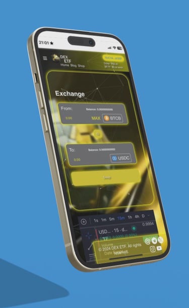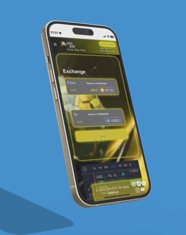 En DEX ETF, ofrecemos una experiencia avanzada y fácil de usar con funciones exclusivas que redefinen la interacción en el mundo cripto. Con la compra de criptomonedas a través de Pix, la incorporación de nuevos usuarios es rápida y accesible. El intercambio con deslizamiento automático asegura transacciones optimizadas, mientras que el puente entre blockchains facilita un movimiento sin interrupciones a través de redes. Nuestro staking integrado permite ingresos pasivos directamente en la plataforma, y la conectividad web3 con nuestra wallet garantiza una integración segura y fluida.Nuestra plataforma ahora amplía las opciones de activos al soportar tokens de Uniswap, PancakeSwap, NexReing y varias redes compatibles con EVM (Ethereum Virtual Machine), otorgando acceso a miles de tokens. Esto crea una experiencia completa e interconectada que reúne lo mejor de las redes descentralizadas en una sola plataforma, adaptándose a todos los perfiles de inversionistas.