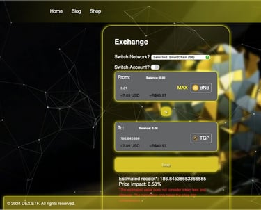 Descubra la revolución en el mundo de las criptomonedas con DEX ETF, el primer intercambio descentralizado (DEX) integrado al metaverso. Acceda a nuestra innovadora plataforma directamente dentro de un entorno virtual inmersivo, donde puede realizar todas sus transacciones de forma fácil y segura. Navegue, intercambie tokens, participe en apuestas e interactúe con otros inversores, todo dentro del metaverso.